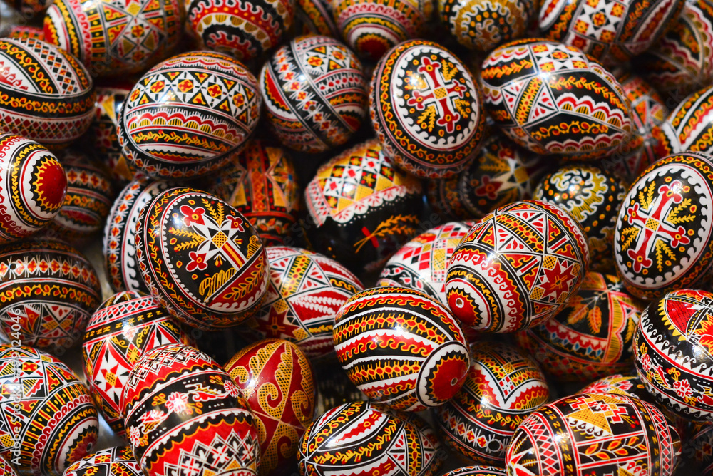 Fototapeta Traditional painted eggs at the Ciocanesti fair, for the orthodox Easter in the