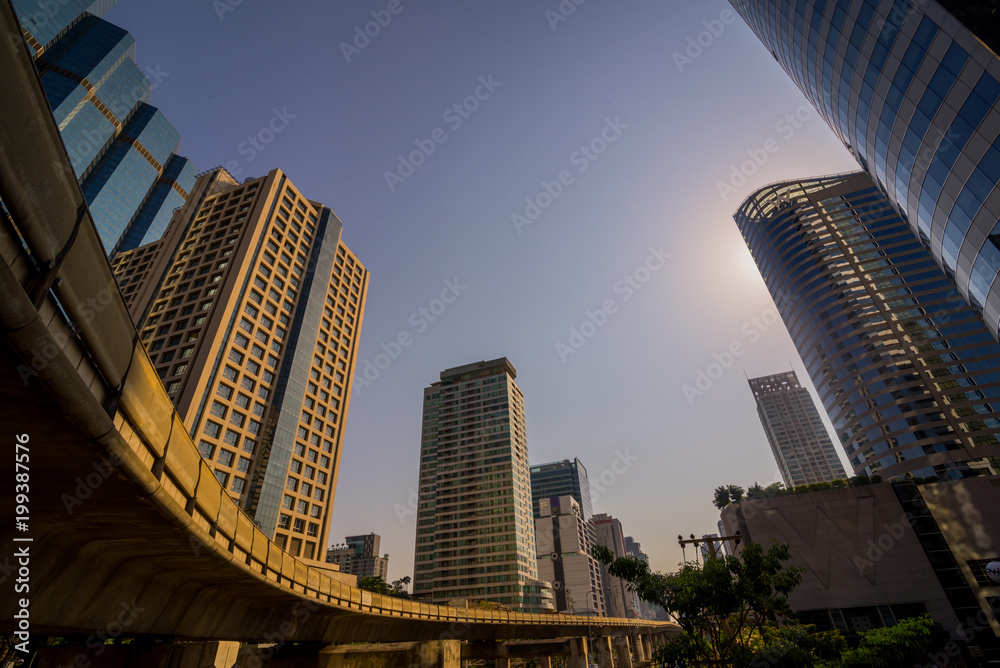 Fototapeta cityscape of modern office building & bridge at Chong Nonsi station of bts sky t