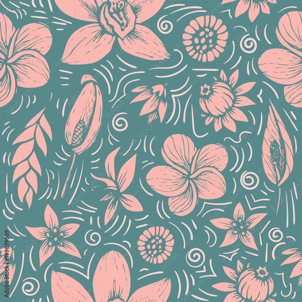 Fototapeta vector seamless beautiful artistic bright tropical pattern with banana, Syngoniu