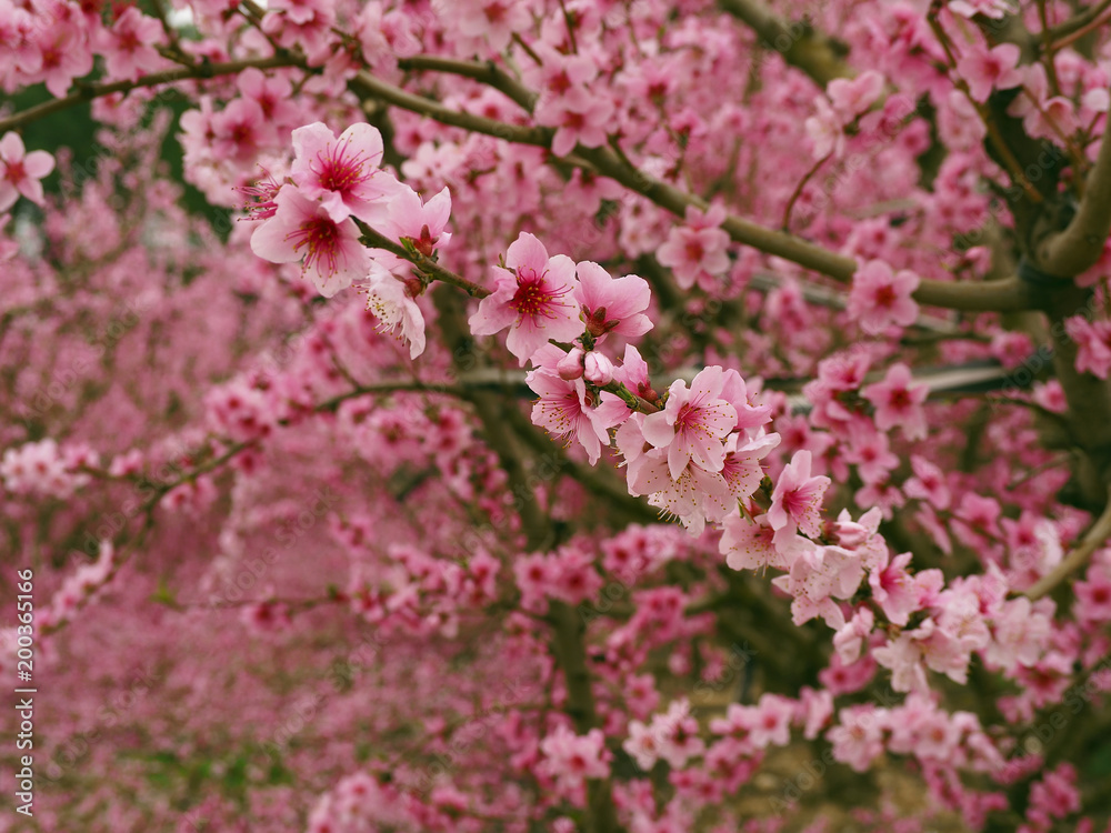 Fototapeta Pink flowers on a branch of a fruit tree