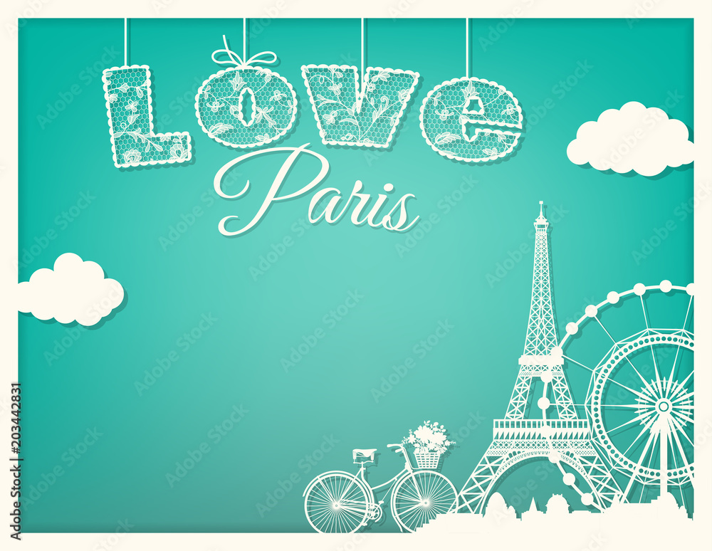 Fototapeta card love Paris with the architecture of Paris. cut from paper