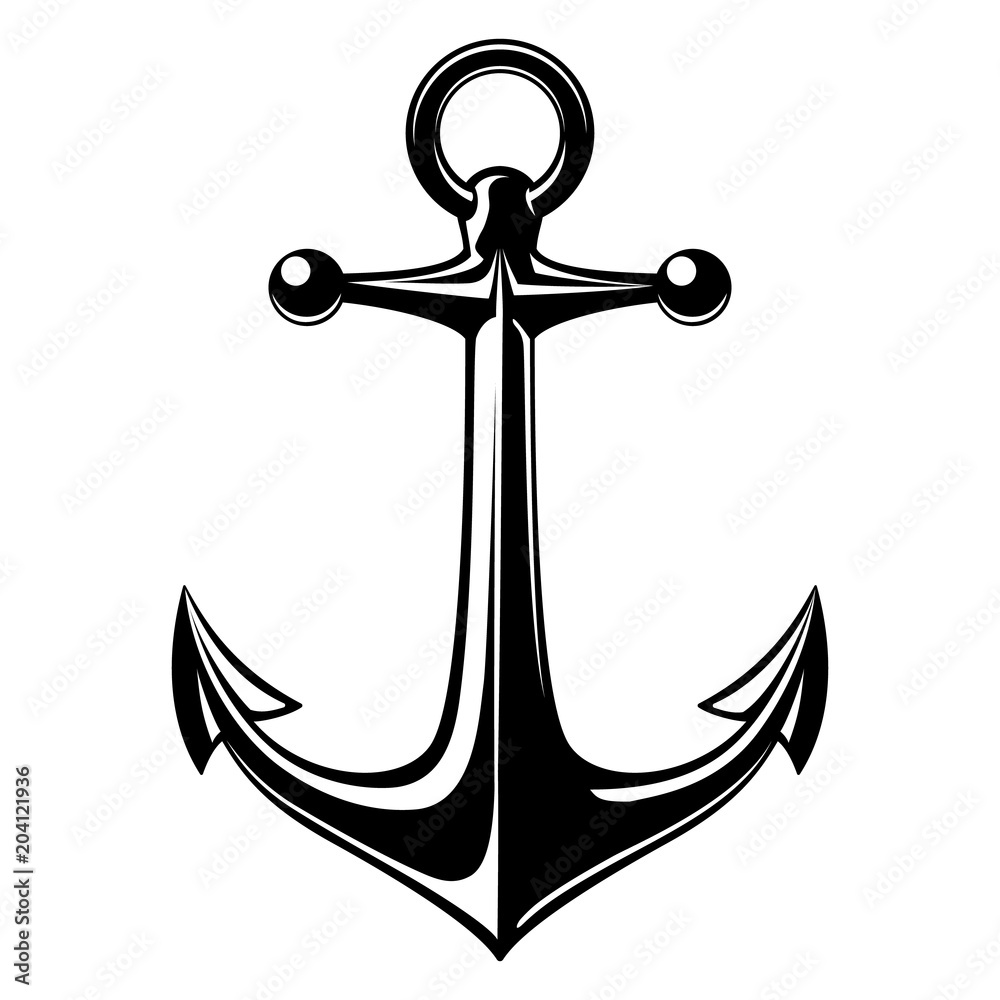 Fototapeta Vector illustration, monochrome sea anchor icon isolated on white background