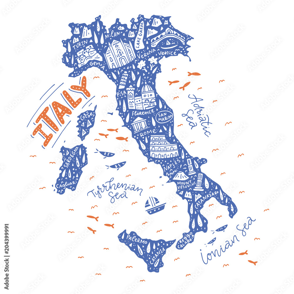 Fototapeta Handdrawn map of Italy