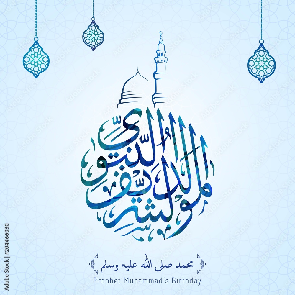 Fototapeta Mawlid al nabi arabic calligraphy translation text - prophet Muhammad's birthday