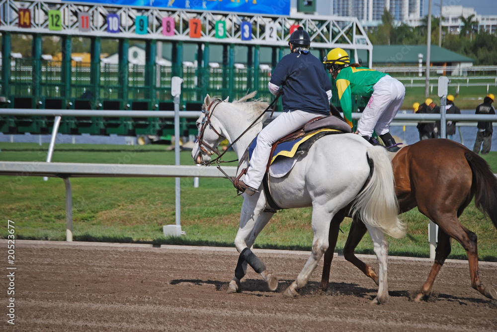 Fototapeta Racehorse Being Lead to the Starting Gate