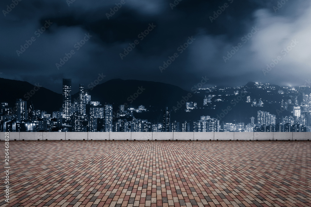 Fototapeta modern square and skyscrapers at night