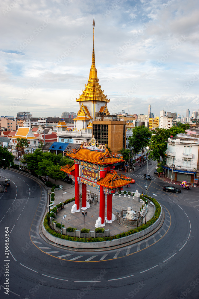 Fototapeta The Gateway Arch (Odeon Circle) and Golden Buddha Temple, Landmark of Chinatown
