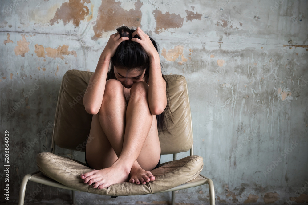 Fototapeta Depress Asian girl in dirty brothel