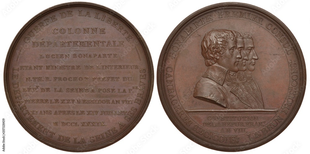 Fototapeta France French commemorative medal circa 1800, Lucien Bonaparte lays first stone