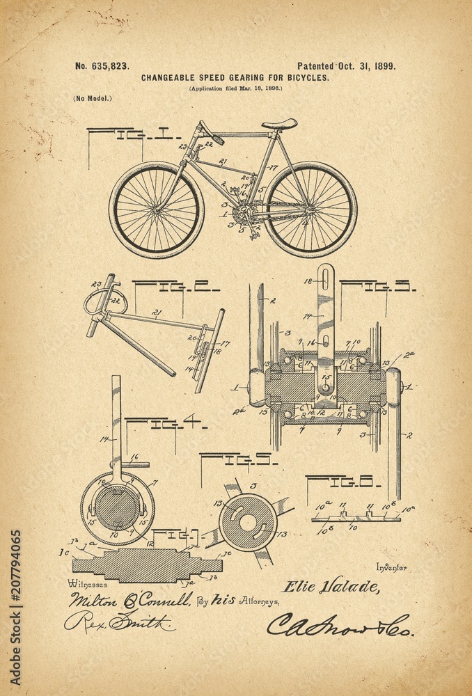 Fototapeta 1899 Patent Velocipede Bicycle history invention