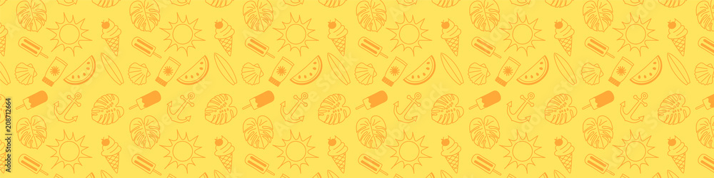 Fototapeta Banner with hand drawn summer icons and copyspace. Vector.