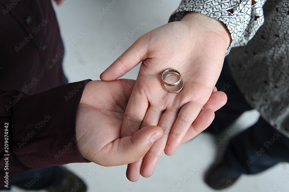 Fototapeta parr hält eheringe verlobungsringe in händen