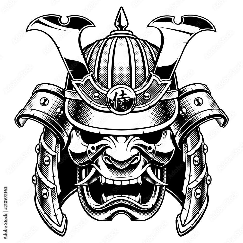 Fototapeta Samurai warrior mask (B&W version)