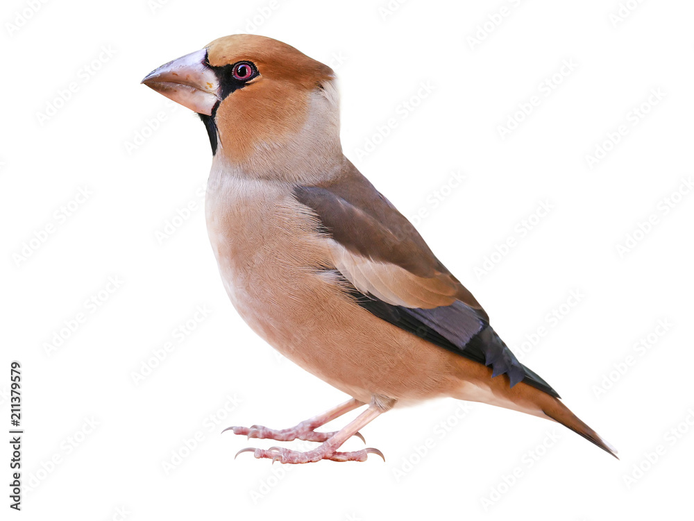 Fototapeta Male Hawfinch (Coccothraustes coccothraustes), isolated on white background