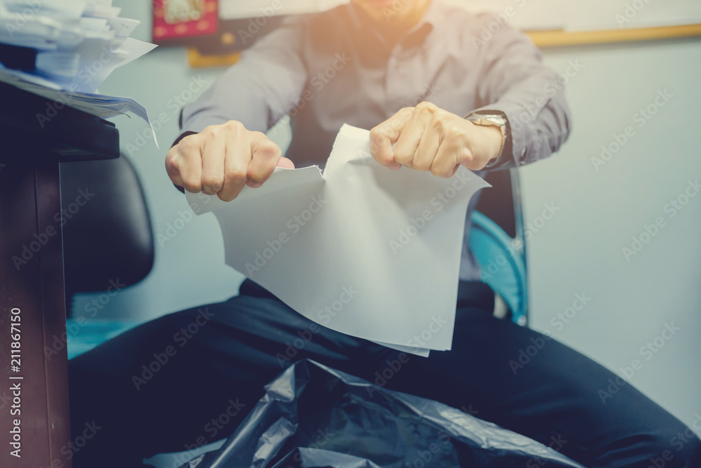 Fototapeta Businessman tearing blank paper apart
