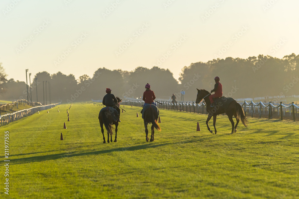 Fototapeta Race Horse Rider Training Track Landscape Morning