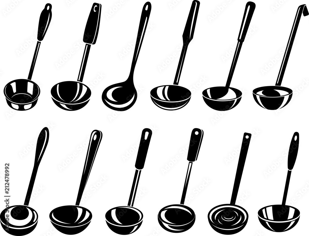 Fototapeta Kitchen ladle soup cook icon set, simple style