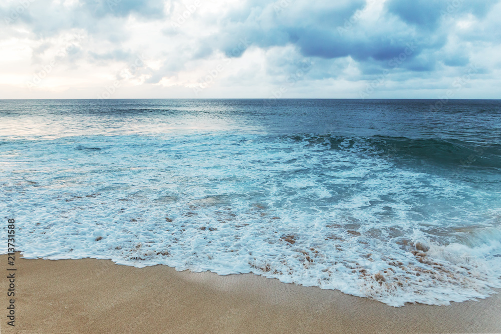 Fototapeta Beautiful shoreline at tropical sandy beach in Oahu island, Hawaii