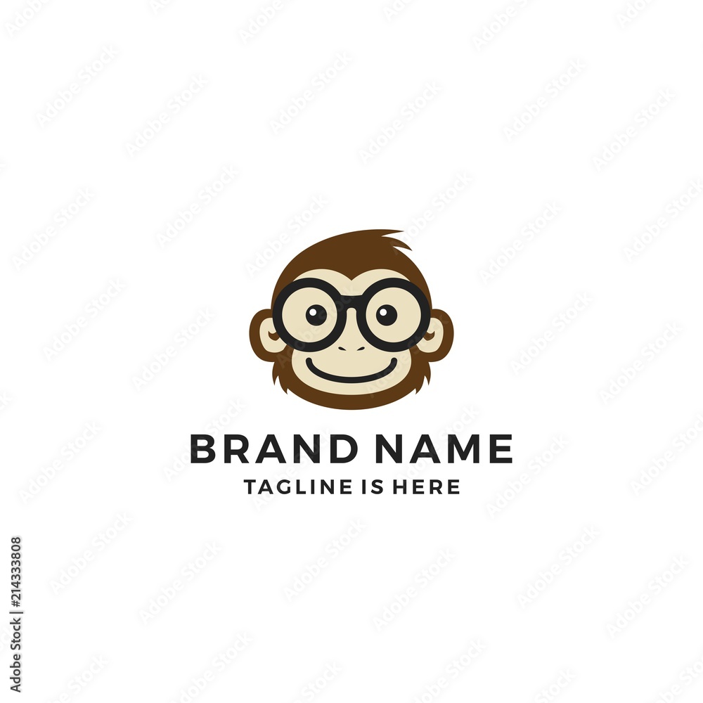 Fototapeta monkey chimp geek smart charm mascot character logo template vector icon
