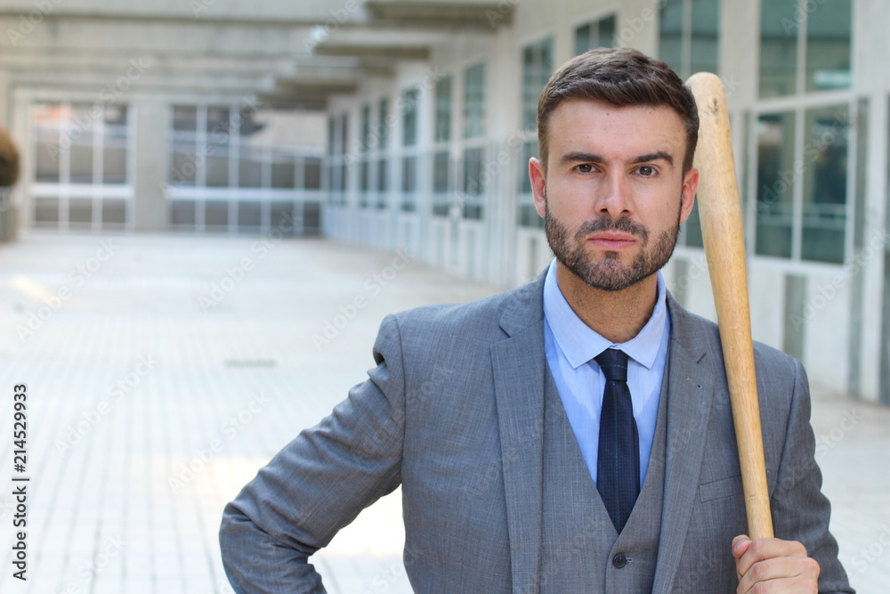 Fototapeta Angry businessman holding baseball bat