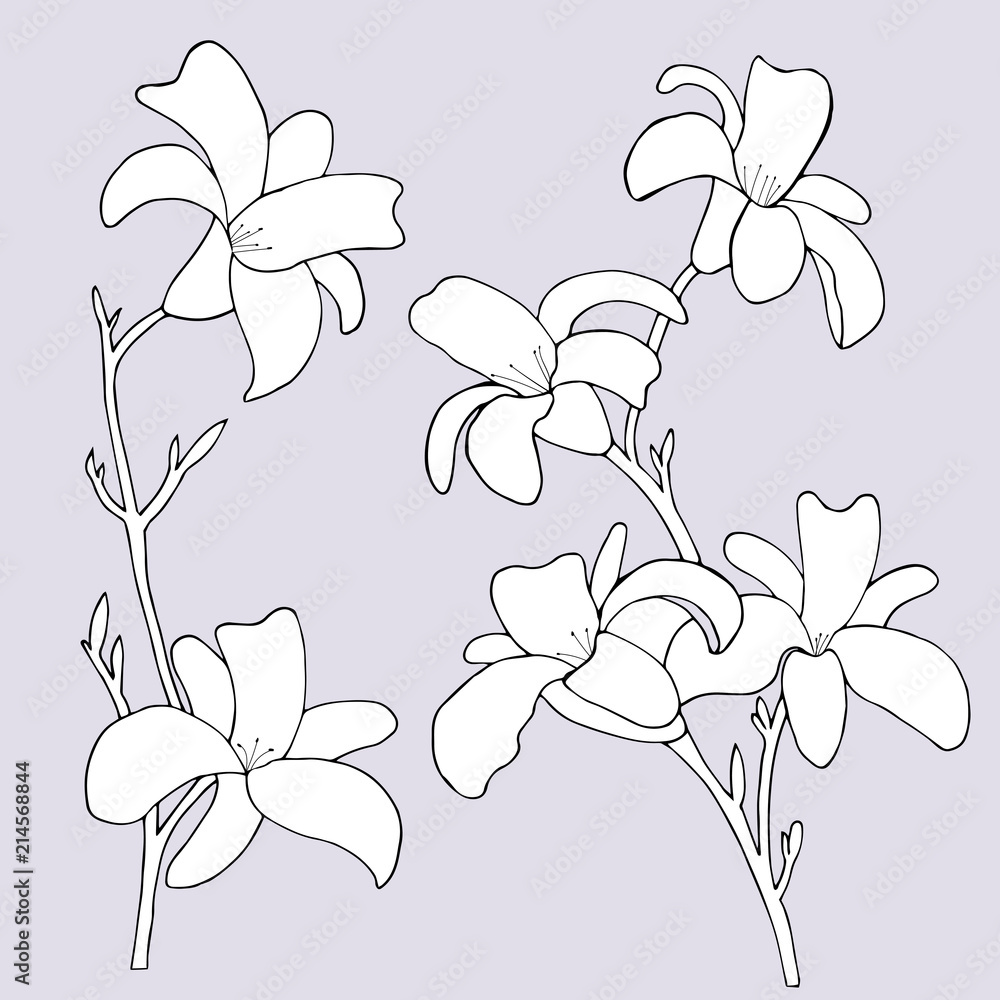 Fototapeta daylily flowers on a blue background. Vector illustration.
