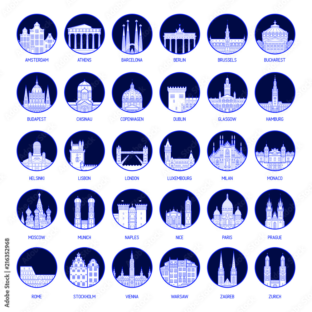 Fototapeta Big collection badges European cities vector
