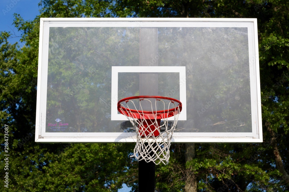 Fototapeta A glass backboard on the outdoors basketball hoop.