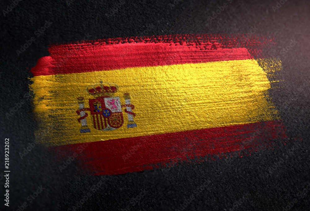 Fototapeta Spain Flag Made of Metallic Brush Paint on Grunge Dark Wall