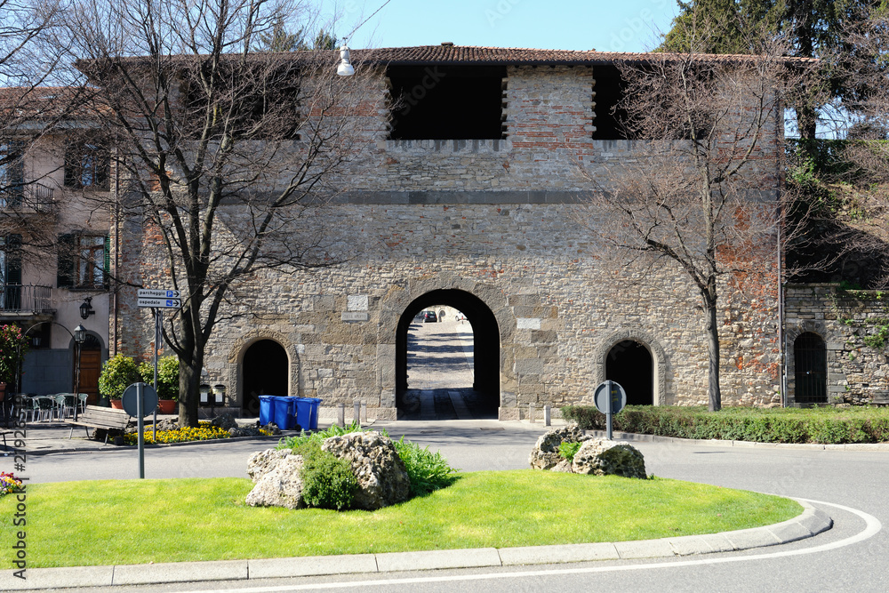 Fototapeta City gate, Colle Aperto, Città Alta, Bergamo, Italy, Lombardy
