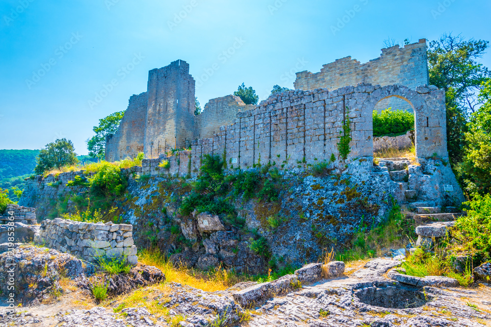 Fototapeta Buoux Castle overlooking Luberon regional natural park in France