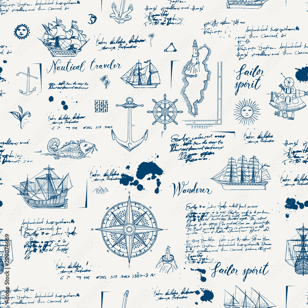 Fototapeta Vector abstract seamless background on the theme of travel, adventure and discovery