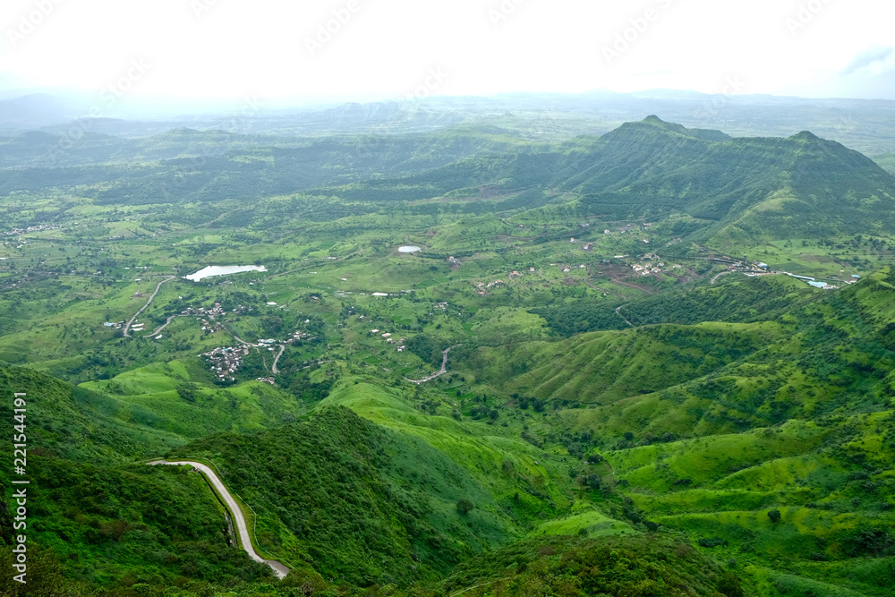 Fototapeta Beautiful landscape aerial, and closeup Photos of nature, roads, grass, trees, village, and farm land