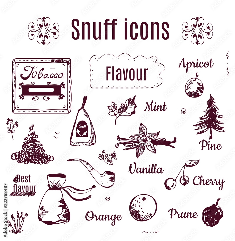 Fototapeta Tobacco snuff icons - sketch style, vector graphic illustration