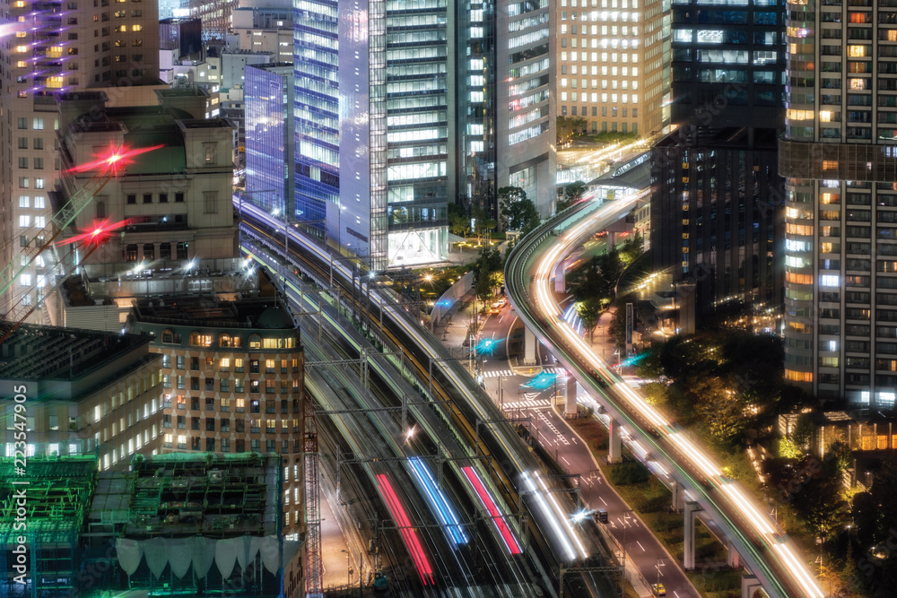 Fototapeta View of sky train traffic running in city downtown at Daimon