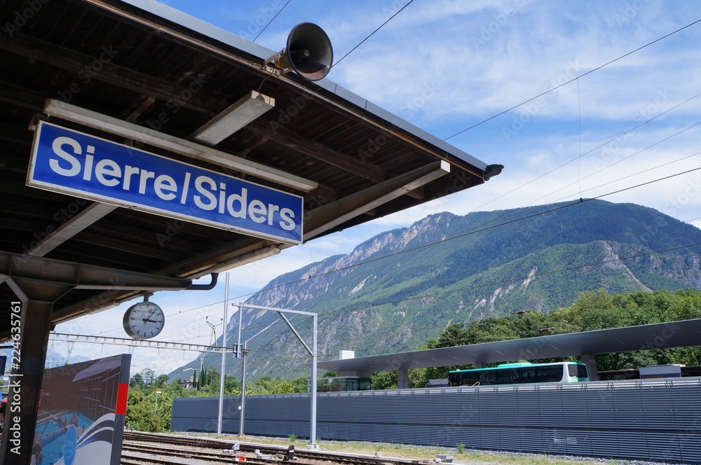 Fototapeta スイス・シエール/ジーダース駅とアルプス