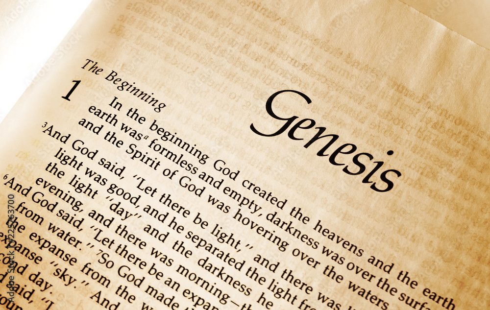 Fototapeta Open page in the bible showing Genesis Chapter one verse one - In the Beginning