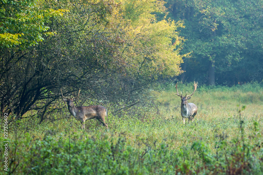 Fototapeta Beautiful fallow deer male (dama dama) in autumn forest.