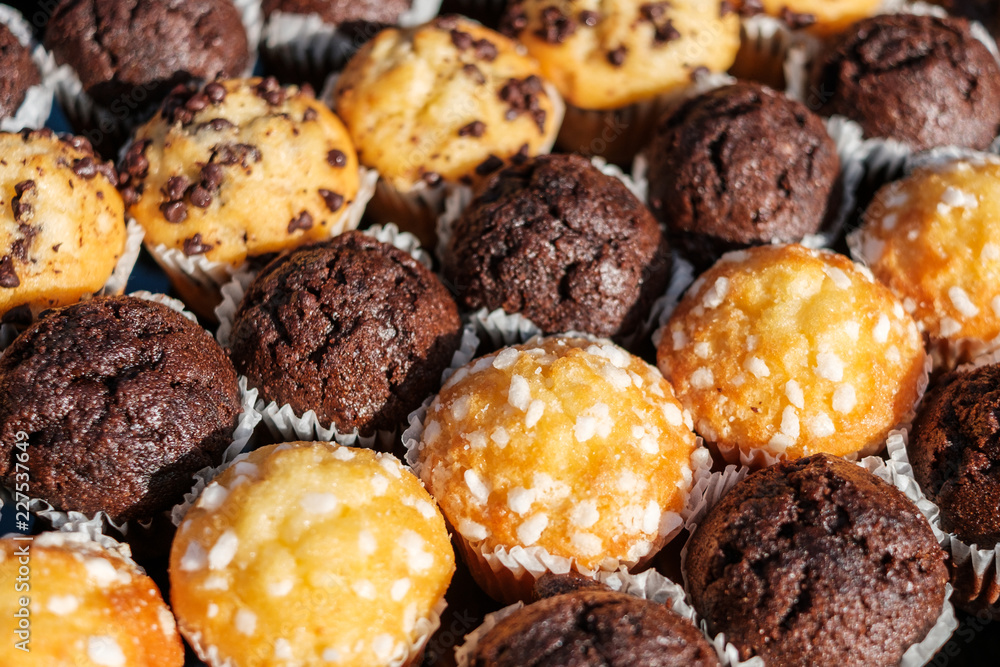 Fototapeta many mini muffins on dessert buffet - muffin closeup -