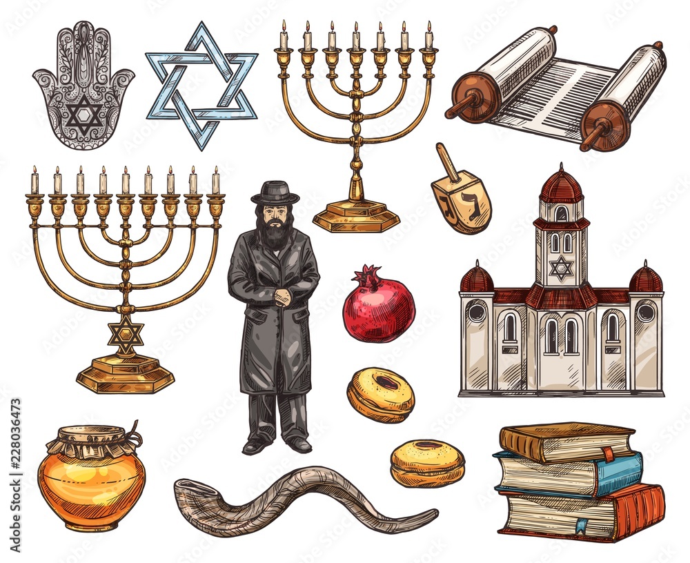 Fototapeta Judaism religion symbols, isolated vector sketch