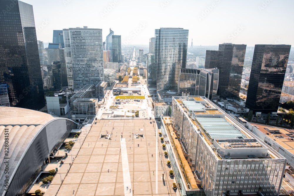 Fototapeta Aerial morning view of La Defense financial district with beautiful skyscrapers