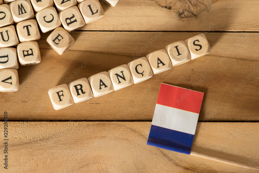 Fototapeta Flagge von Frankreich und das Wort Französisch