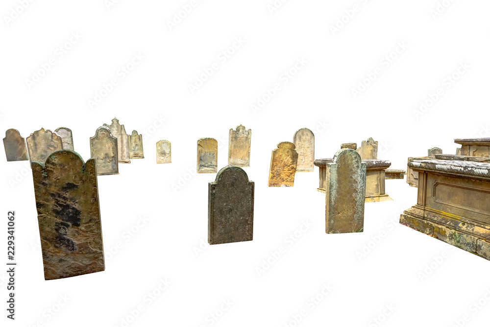 Fototapeta cemetery ancient tombs isolated on white background with copyspace
