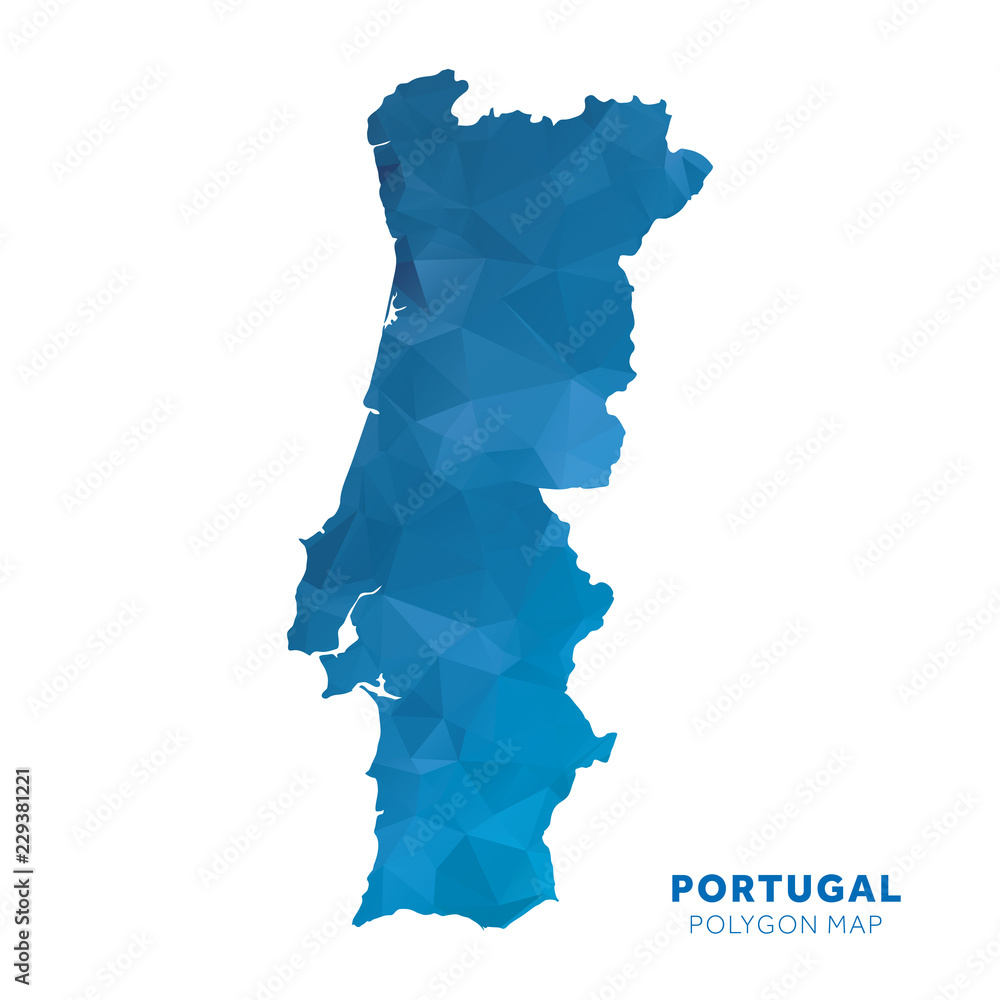 Fototapeta Map of Portugal. Blue geometric polygon map.