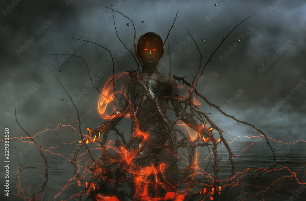 Fototapeta 3d illustration of Demon in the lake,Scary background mixed media