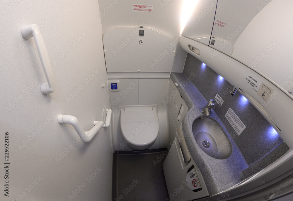 Fototapeta Bathroom of an aircraft Boeing 737-400