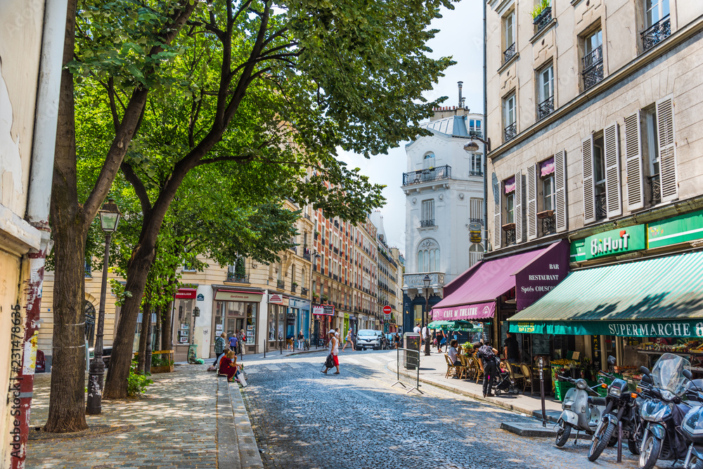 Fototapeta Picturesque paved street in world famous Montmartre neighborhood