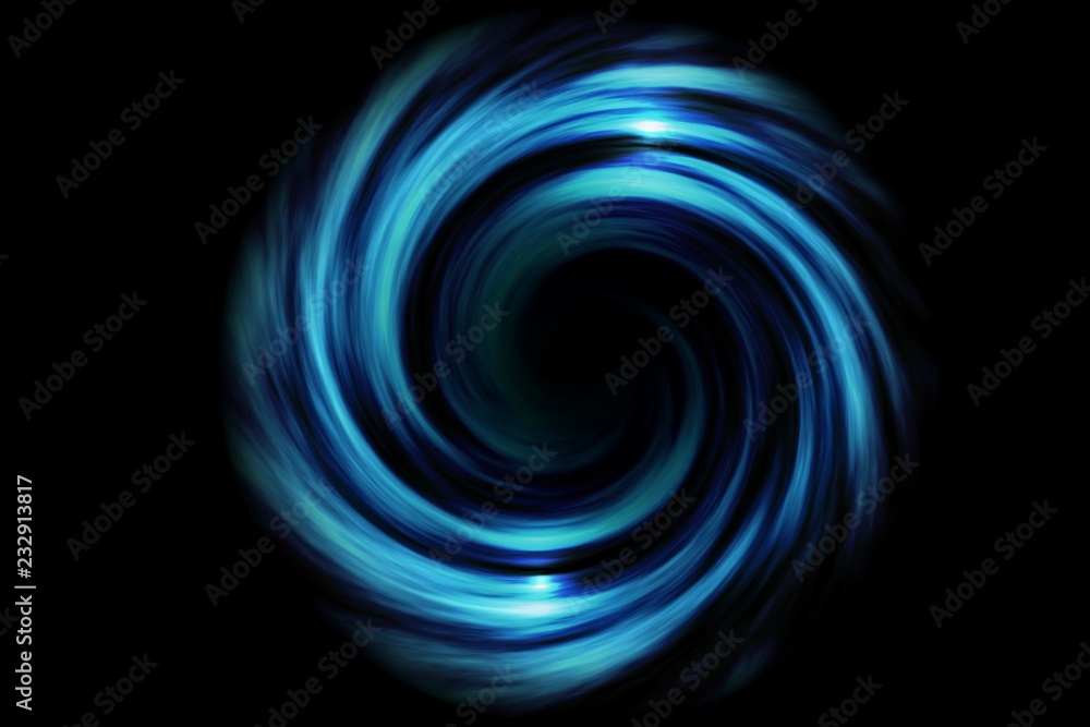 Fototapeta Abstract spiral tunnel with light blue smoke on black background