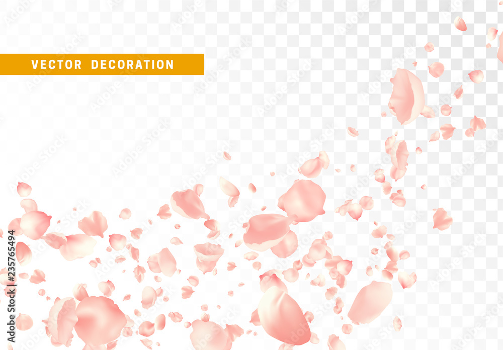 Fototapeta Pink flower petals are flying circling isolated on transparent background