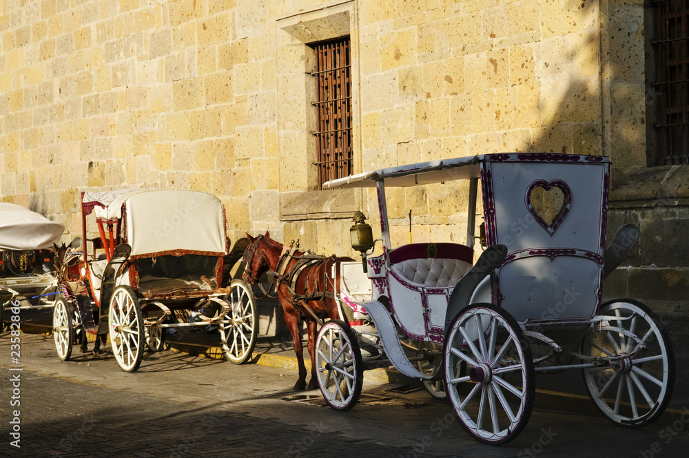 Fototapeta Horse drawn carriages in Guadalajara, Jalisco, Mexico