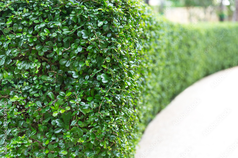 Fototapeta Perspective of green curve trimmed fence